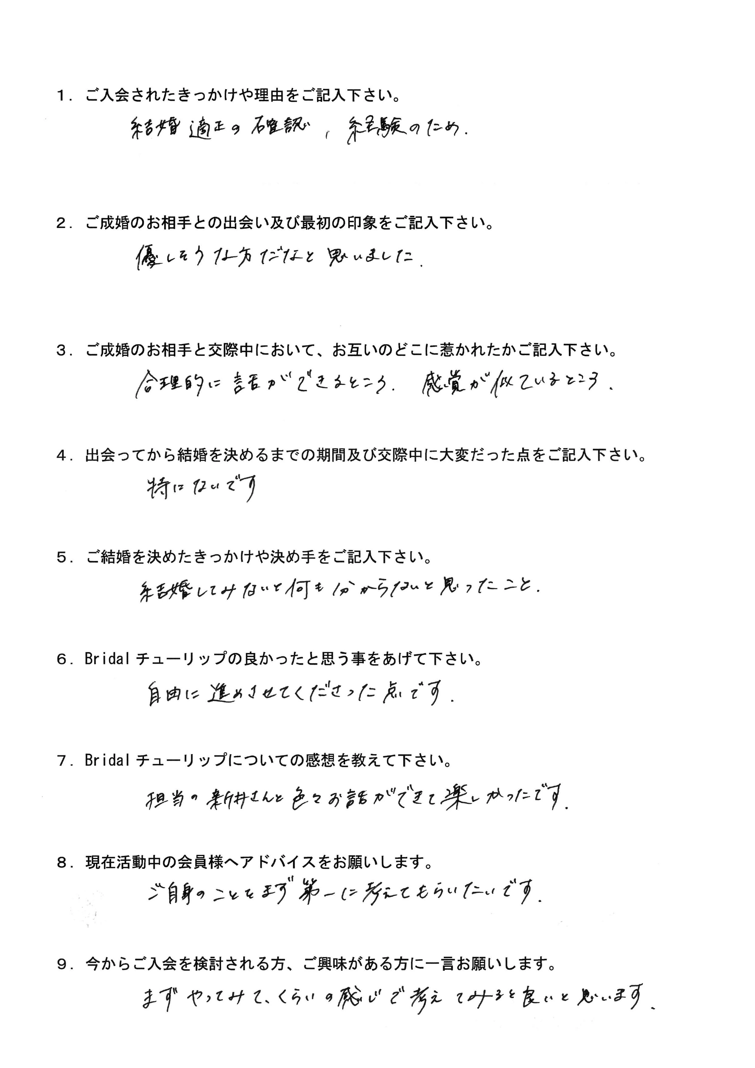 YSさん:男性(30代前半)2026年3月ご成婚「