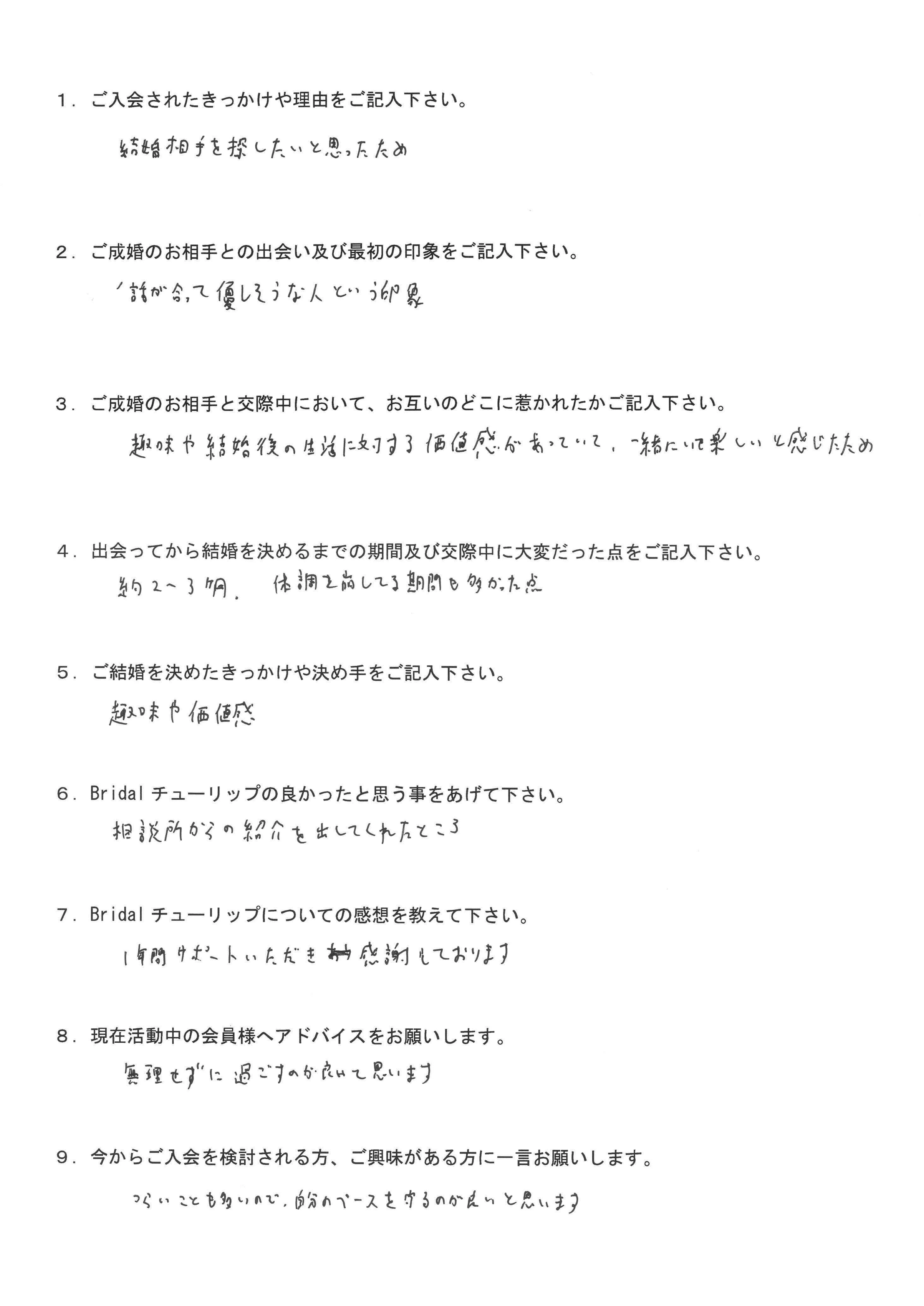 SKさん:女性(30代前半)2025年3月ご成婚「