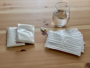 保湿タイプのティッシュや小さめのゴミ袋。のど飴、目の充血を抑える目薬など。